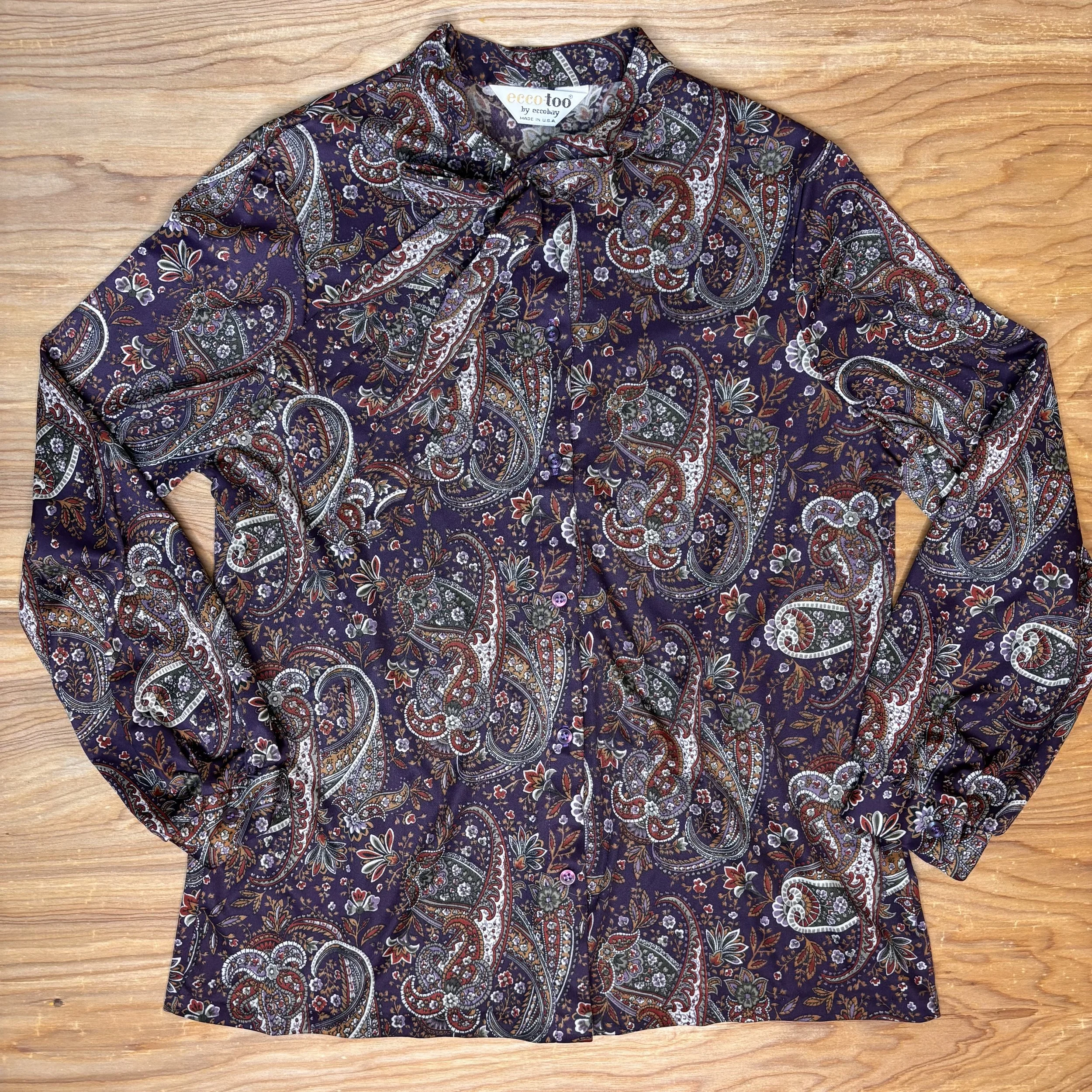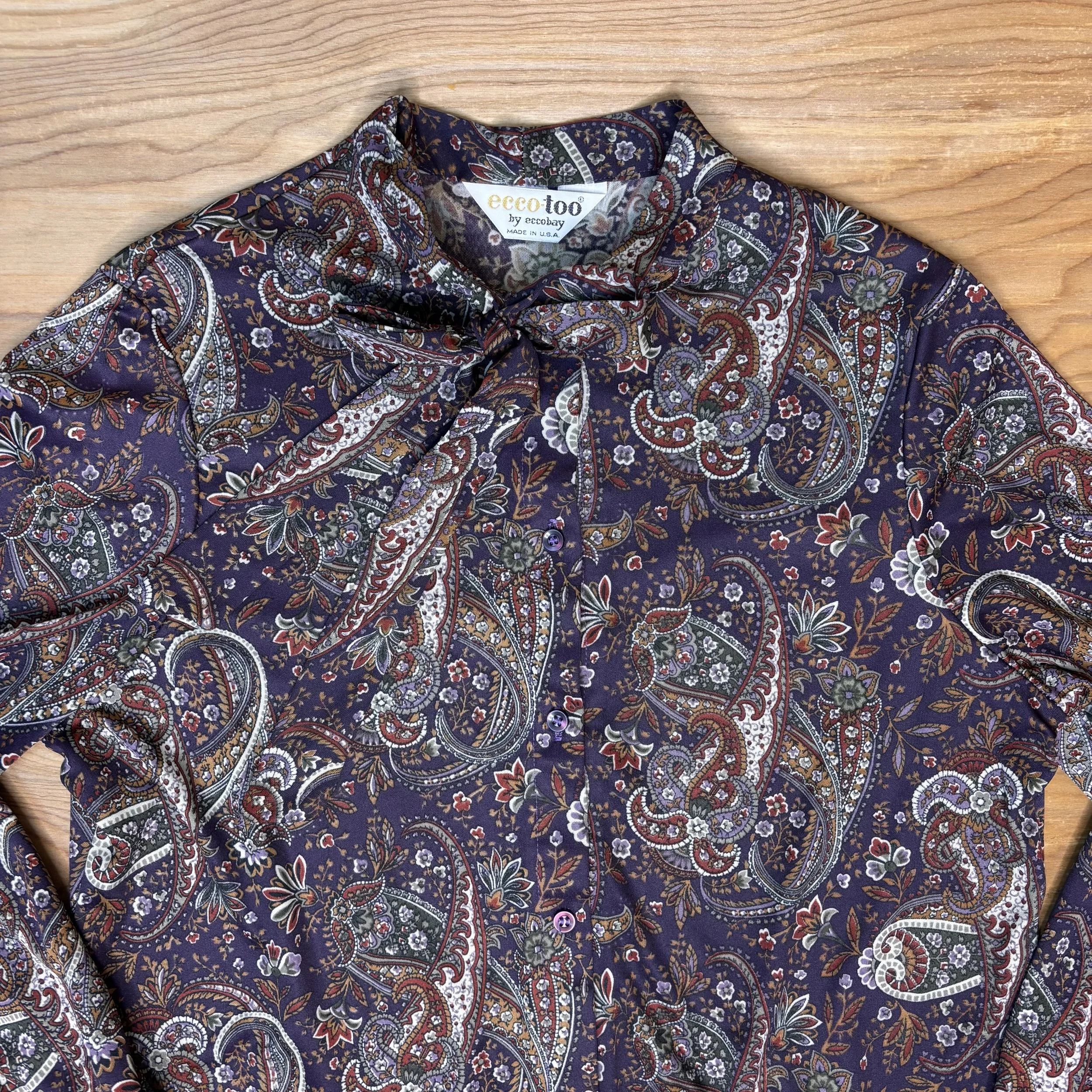 Ecco Too 1970s Paisley Tie-Neck Blouse